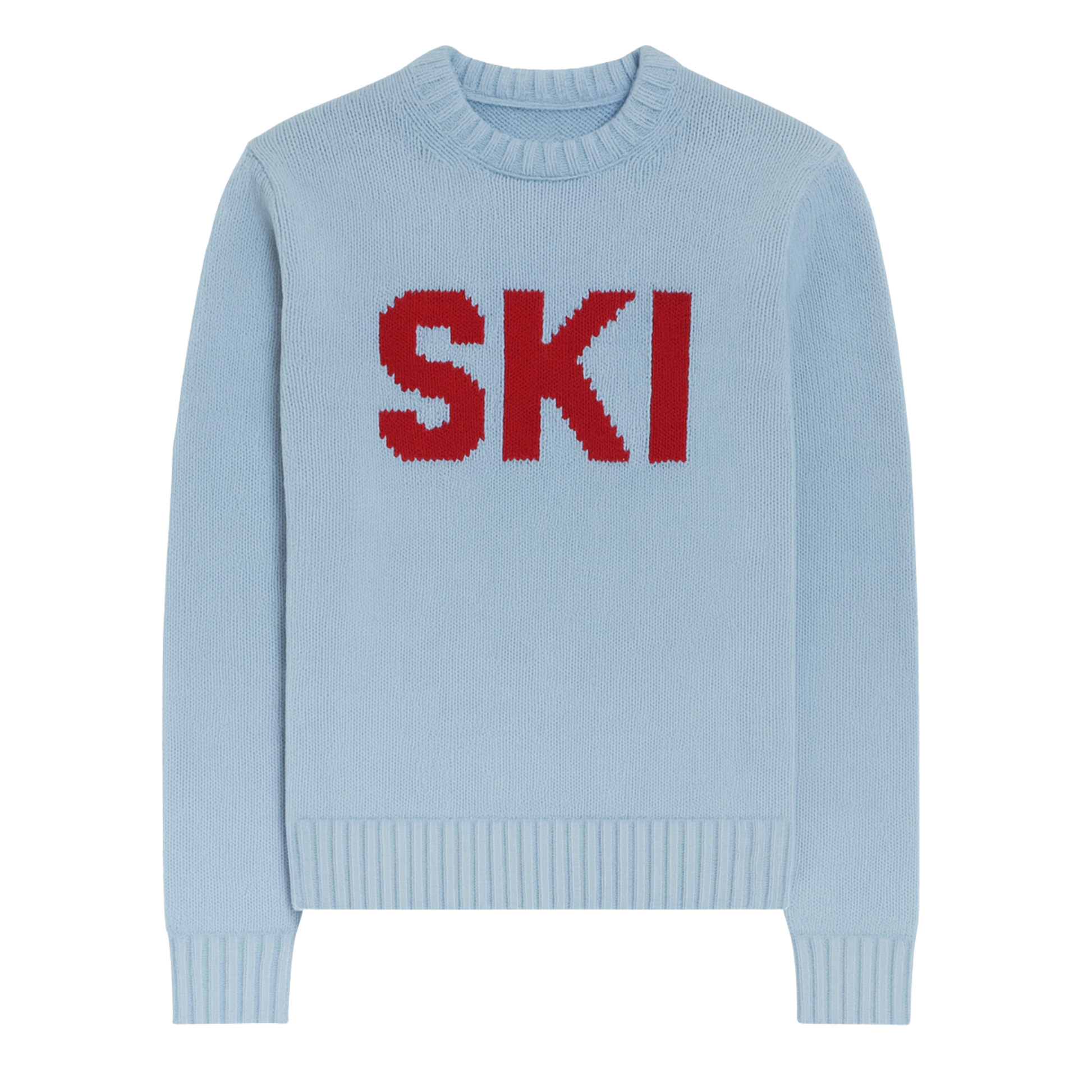 This off white and baby blue knit sweater with red 'ski' and Craigleith Ski Club logo woven in, delivers effortless style and all-day comfort in one versatile piece. Perfect for layering or wearing solo, it's the wardrobe essential that works as hard as you do.